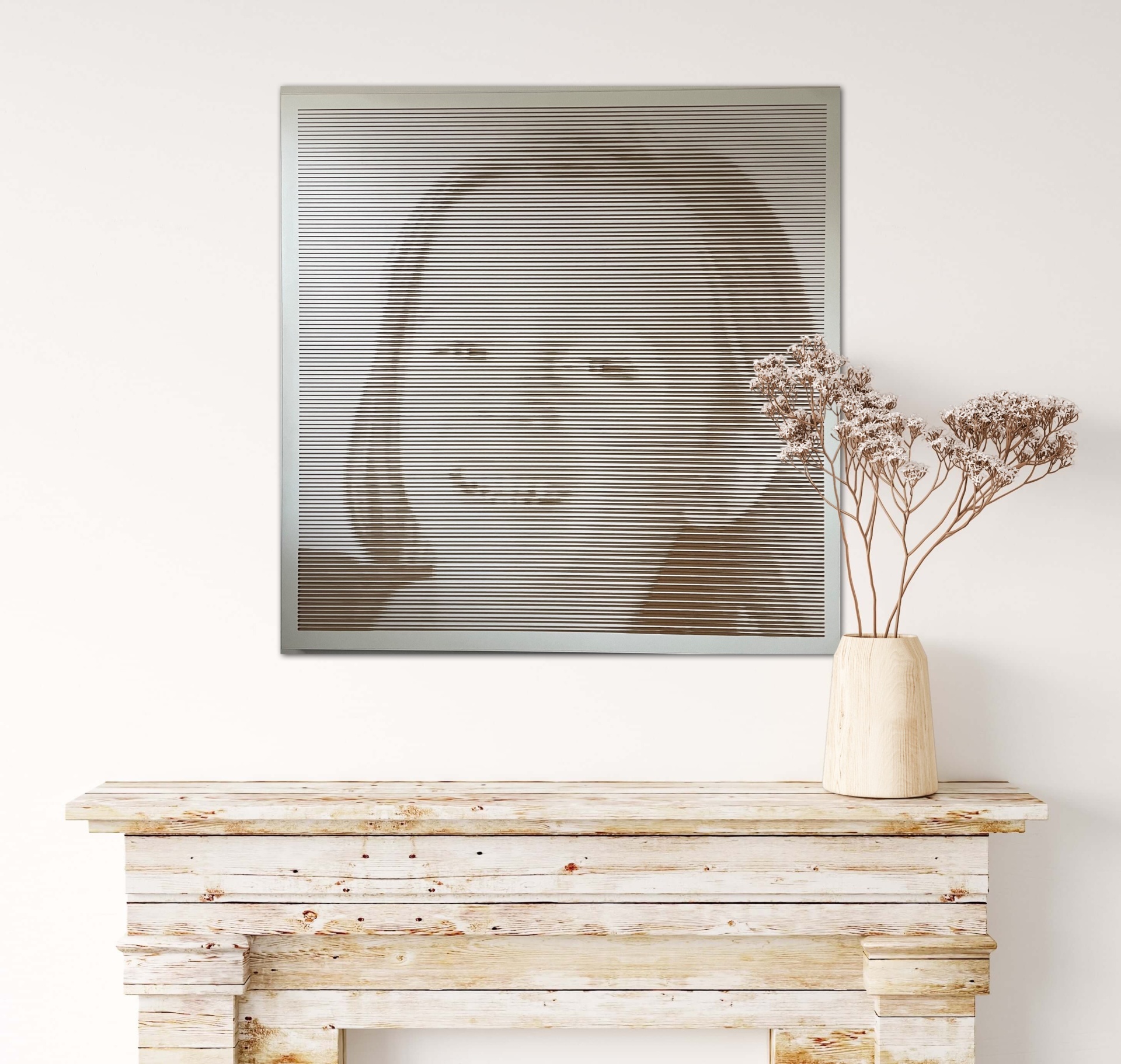 Todos os quadros incluem duas barras de alumínio no seu verso, que têm dupla função: criar um afastamento da parede onde vai ser pendurado, conferindo assim uma outra dimensão ao painel, e permitir pendurar a placa à parede de forma oculta e imperceptível.